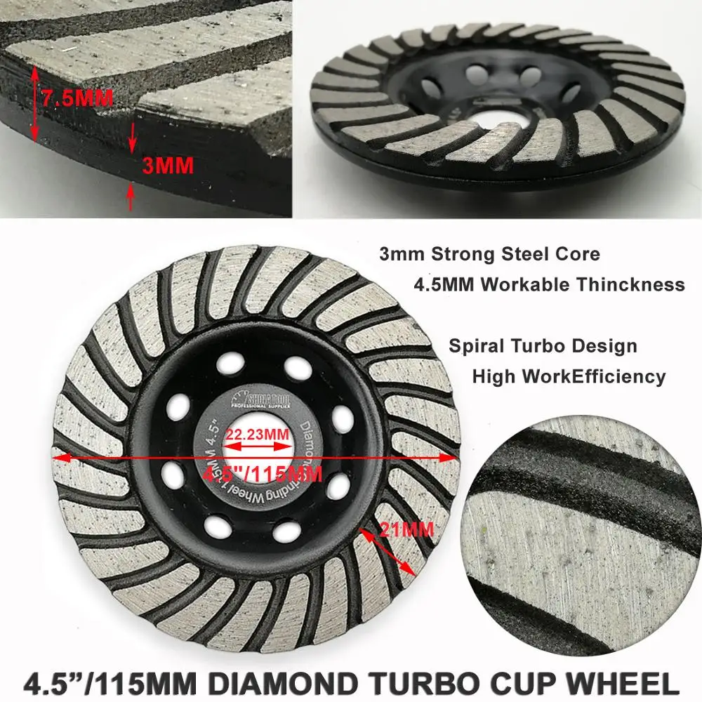 SHDIATOOL 1 шт 115 мм Алмазный Turbo Row Кубок шлифовальный бетон к...