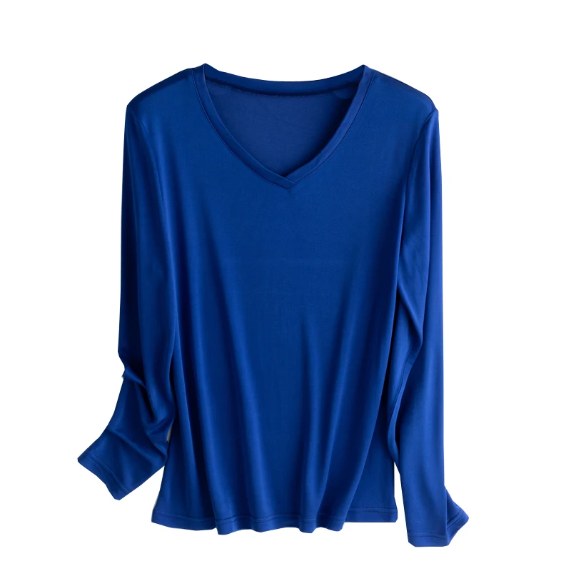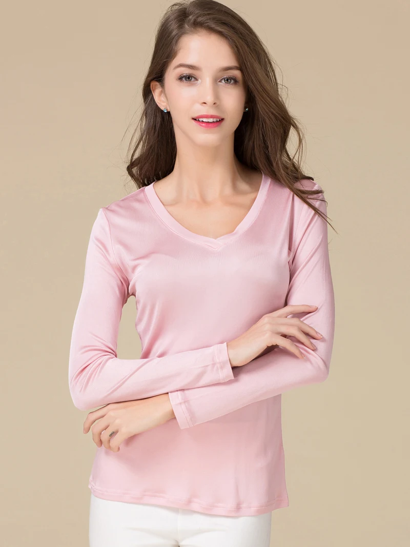 Женская футболка SuyaDream с длинными рукавами, однотонная Базовая рубашка из натурального шелка, с V-образным вырезом, розовый, синий, фиолетовый топ
