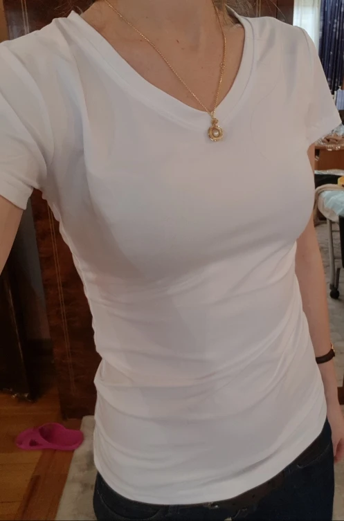 Заказ пришел быстро. Второй раз заказала футболку. Качество хорошее, после стирки не растягивается, не линяет. На объём груди 84 идеально подошёл размер xxl.
