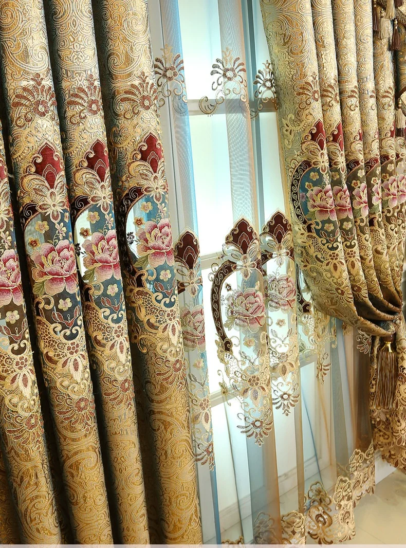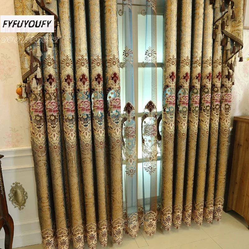 Высококачественные бархатные шторы FYFUYOUFY для гостиной, тюлевые шторы с цветочной вышивкой для спальни, полосатые светонепроницаемые шторы