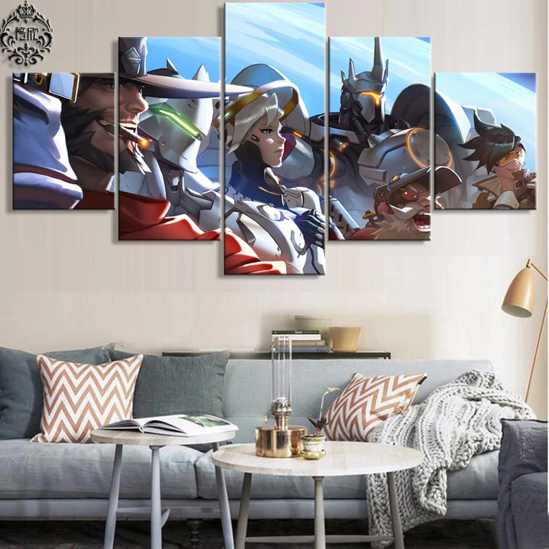 Overwatch D.VA настенное искусство 5 панелей Холст Картина Куадрос ...