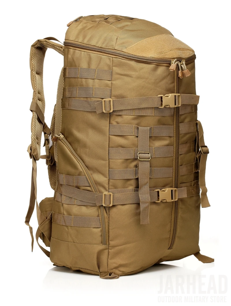Военный тактический рюкзакМатериал: ткань ОксфордЦвет: черный, грязевой.Размер: 75 см * 40 см * 22 смЕмкость: около 55 л