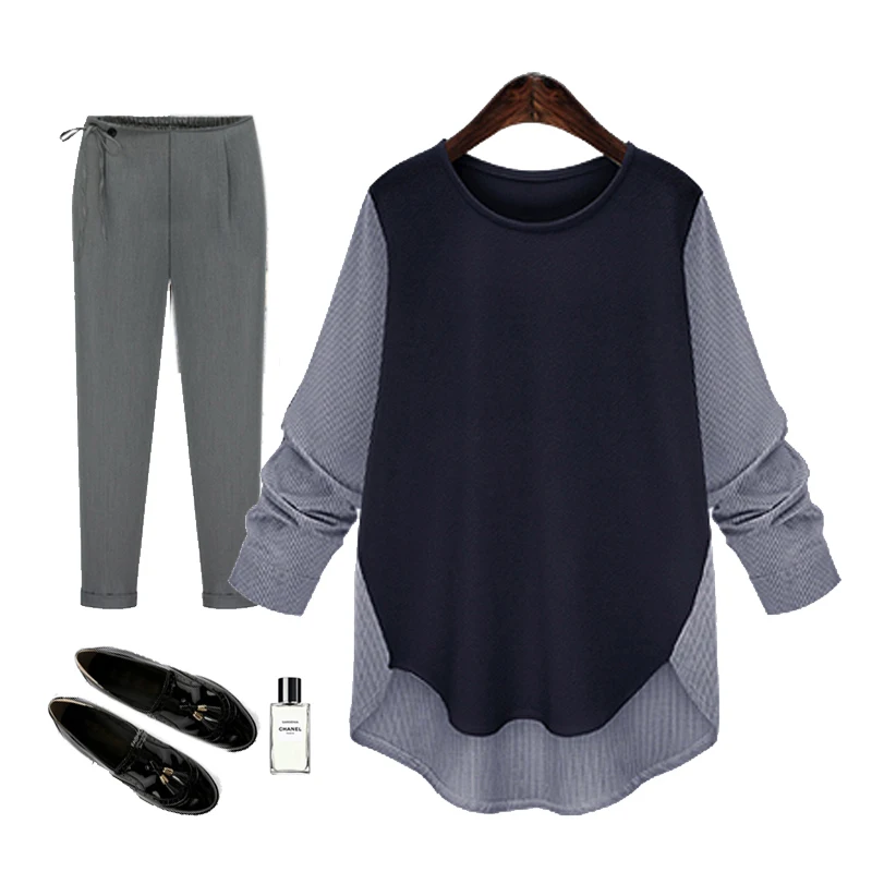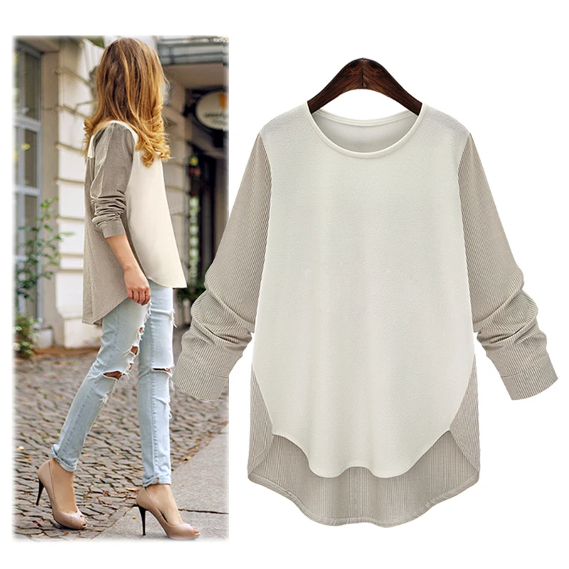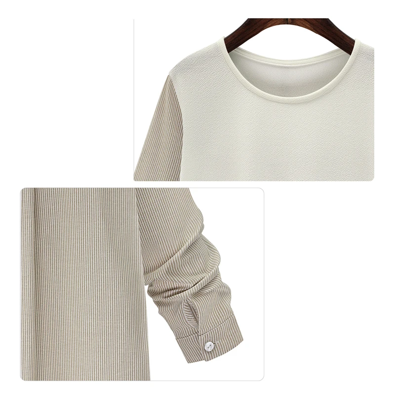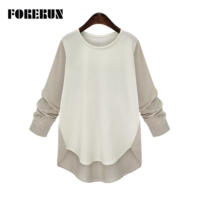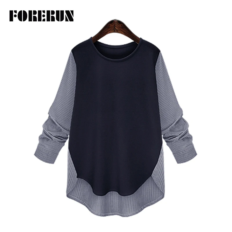 FORERUN женские шифоновые блузки лоскутного размера плюс полосатые рубашки осенние женские Топы с длинным рукавом Chemise Femme Blusas Mujer 2021