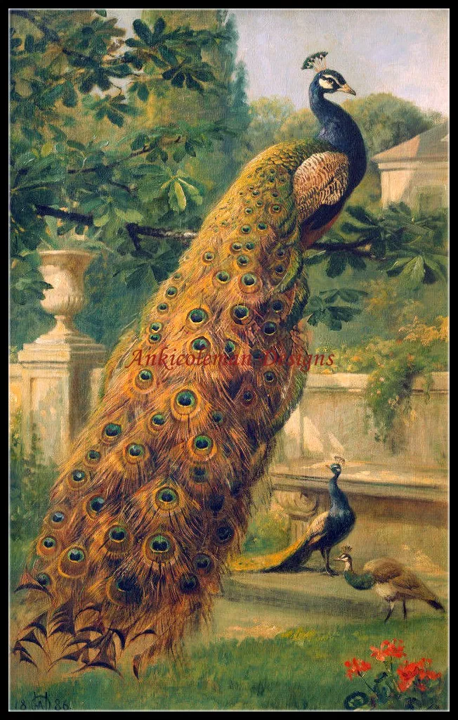 Это новый и Неоткрытый комплект для поперечной строчки под названием" Павлины в парке . "