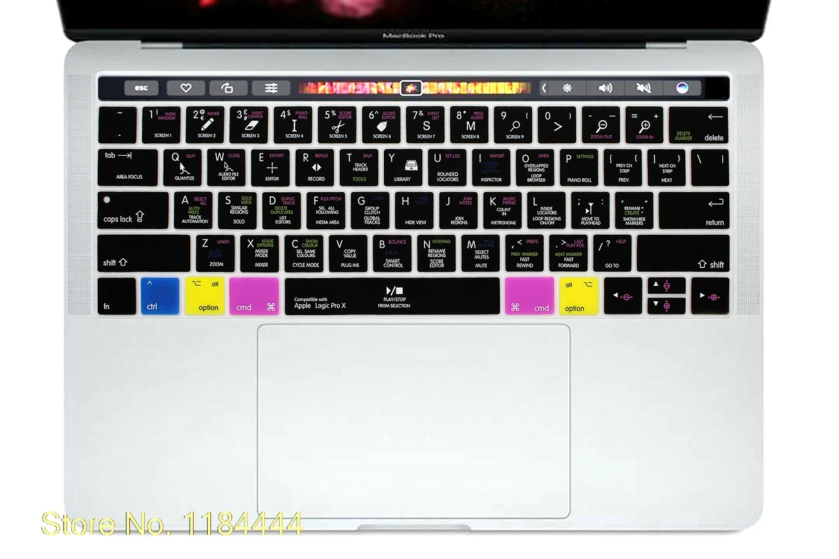 Силиконовый чехол для клавиатуры Logic Pro X с горячим ключом, защита для 13, 15 дюймов, Новый Macbook A1706, A1707, с распознаванием отпечатков пальцев