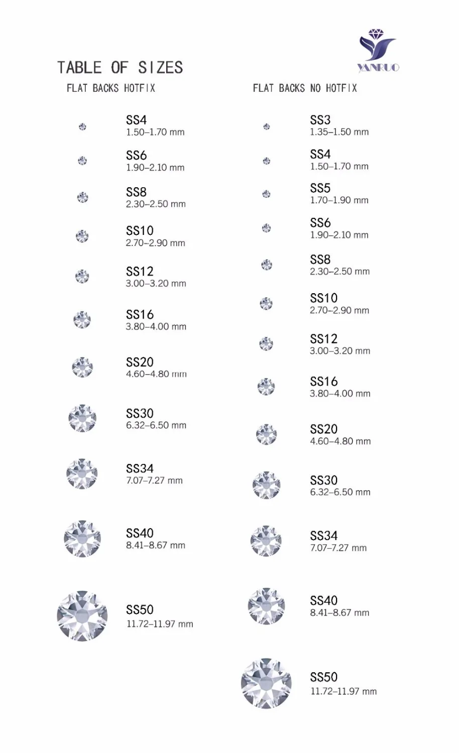 YANRUO 2058HF SS16 SS20 Стразы с утюгом для горячей фиксации Стразы...
