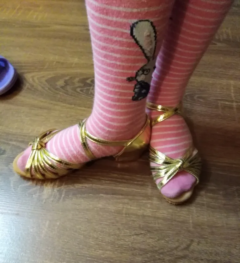 Доставка быстрая. Туфельки отличные, уже дочка танцевала, говорит удобные. На ножку 15,5 взяла самый маленький размер 24, с запасом, но сели хорошо.