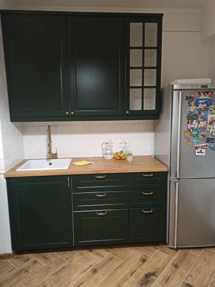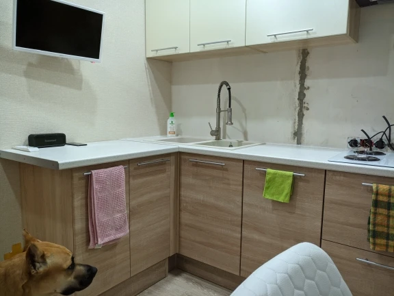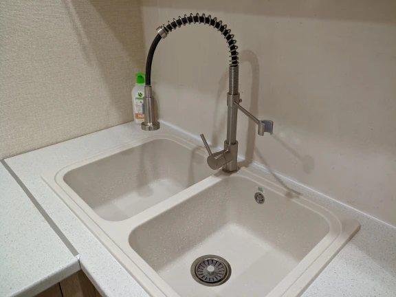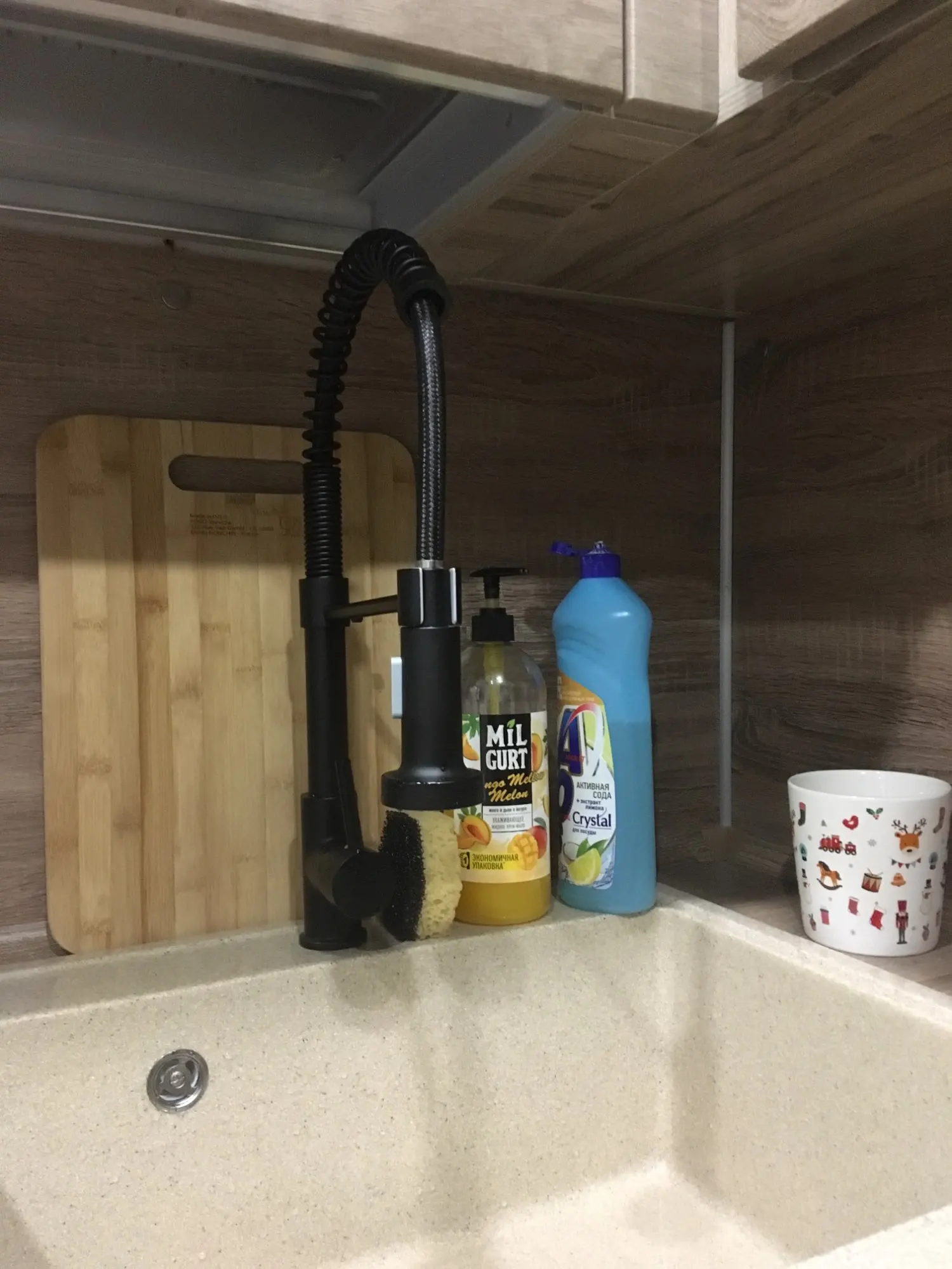 Доставка из России 6 дней. Смеситель жене понравился, для двойной мойки самоё то! Своих денег стоит. Продавцу 5 баллов! На последнем фото высота смесителя для наглядности, расстояние между столешницей и верхними шкафами 650мм.