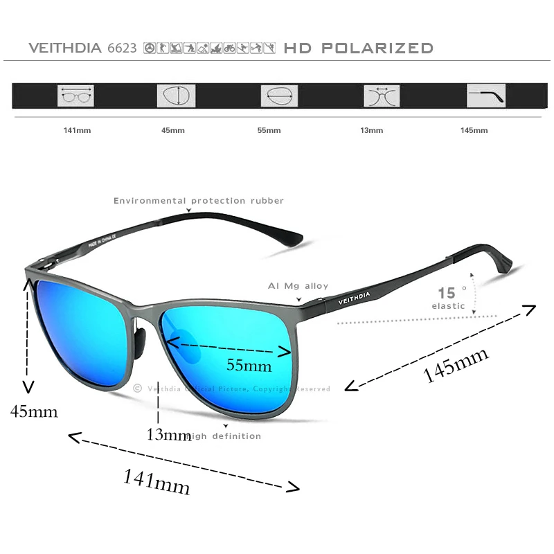 Мужские солнцезащитные очки VEITHDIA, винтажные зеркальные очки из алюминиево-магниевого сплава с поляризационными стеклами, для вождения, модель 6623,