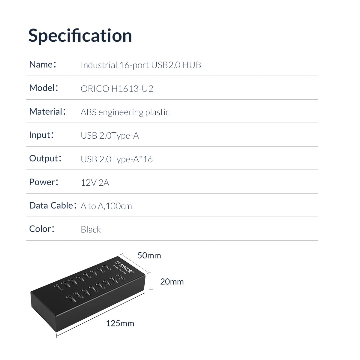 USB-Концентратор ORICO H1613, 16 портов, USB 2,0, 12 В, 2 А