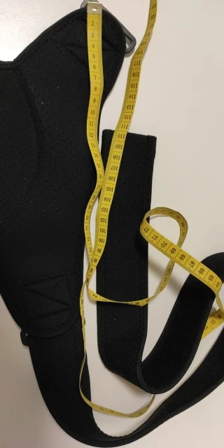 Наплечник приходит в сложенном виде, из-за чего образовался изгиб (может, изначально был брак, так как я пробовал сгибать в разных местах - "заломов" не было), материал в этом месте стал тоньше. Пока это никак не сказывается на функциональности наплечника, но в дальнейшем я не исключаю протирание или разрыв в этом слабом месте. Отмечу также неприятный химический запах, он стандартный для этого материала, постепенно выветрится. Наплечник в меру эластичный, удобная регулировка ремнем. Фиксация со стороны бицепса сделана неправильно - липучка плохо держит, лучше бы сделали две и чтобы они были снаружи.