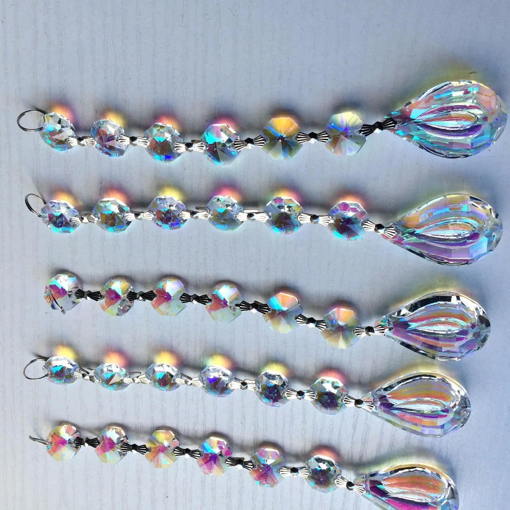 10 шт 38 мм кулон с 6 шт 14 мм Восьмиугольные бусины хрустальные призмы Suncatcher Радуга производитель люстра части лампы Висячие капли ДекорНазвание: хрустальные детали для люстры DIY