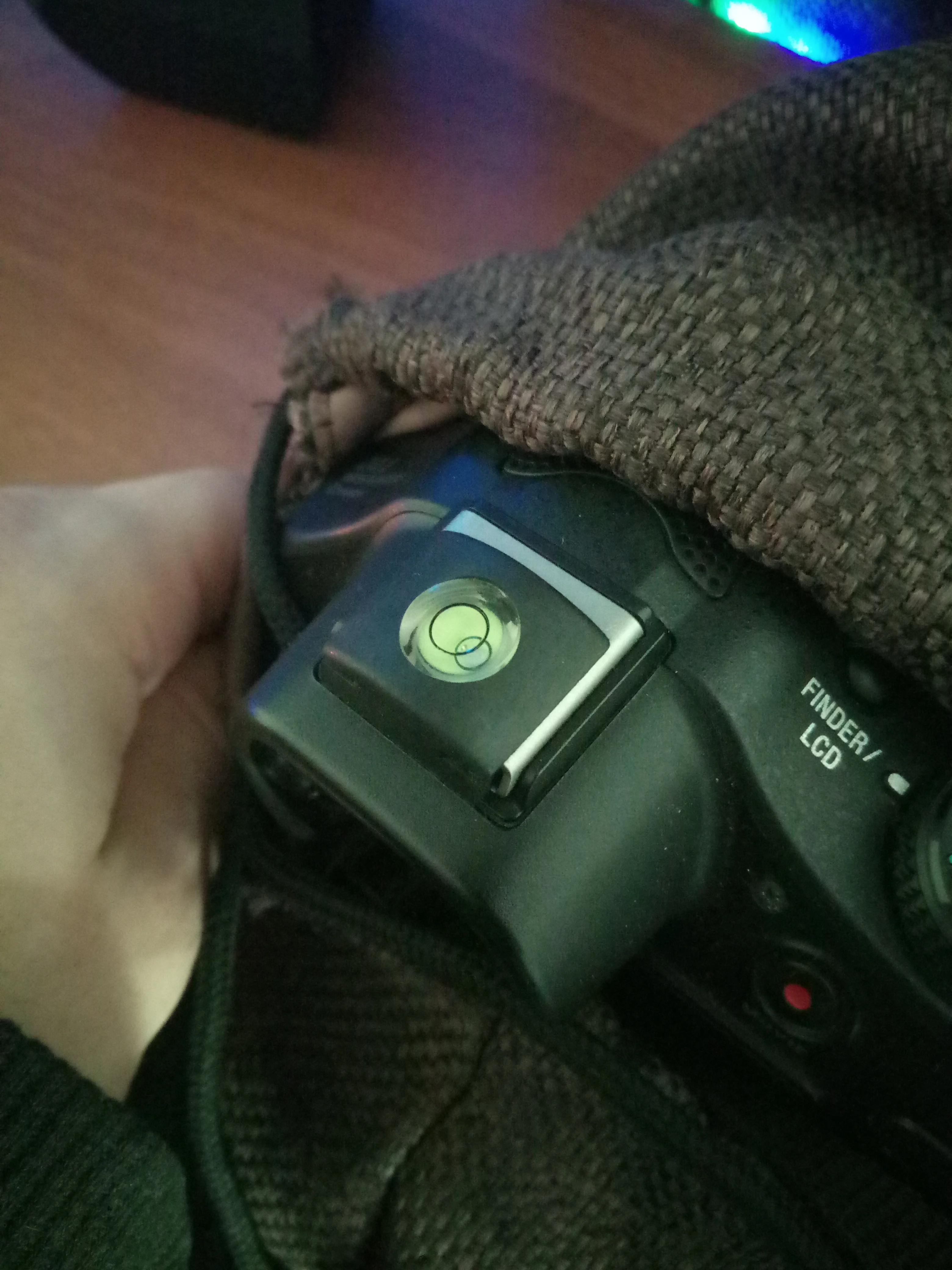 Прикольная заглушка! Она резиновая, а не пластиковая. Сидит прекрасно. Пузырьковый уровень облегчает съёмку пейзажей со штатива.