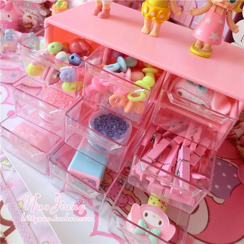 Кавайный розовый прозрачный ящик для хранения в клетку, пластиковый ящик для хранения бусин, аксессуары, коробка для аксессуаров для кукол в клетку, подарки для девочек