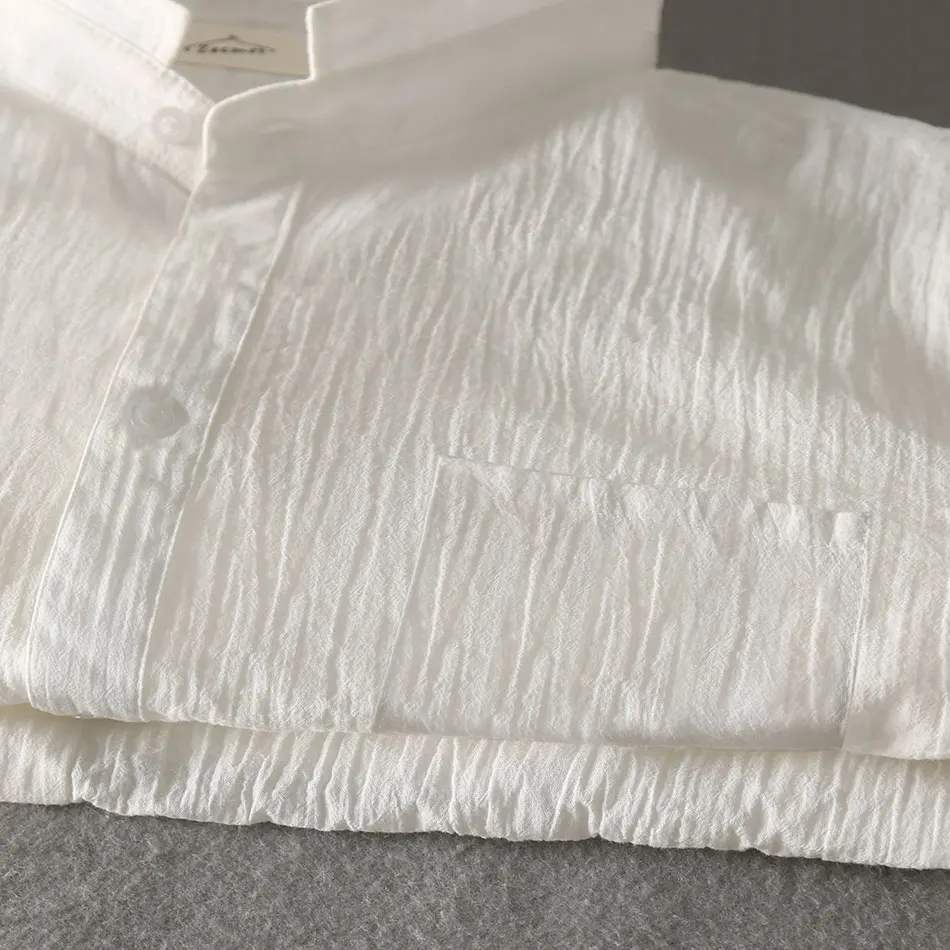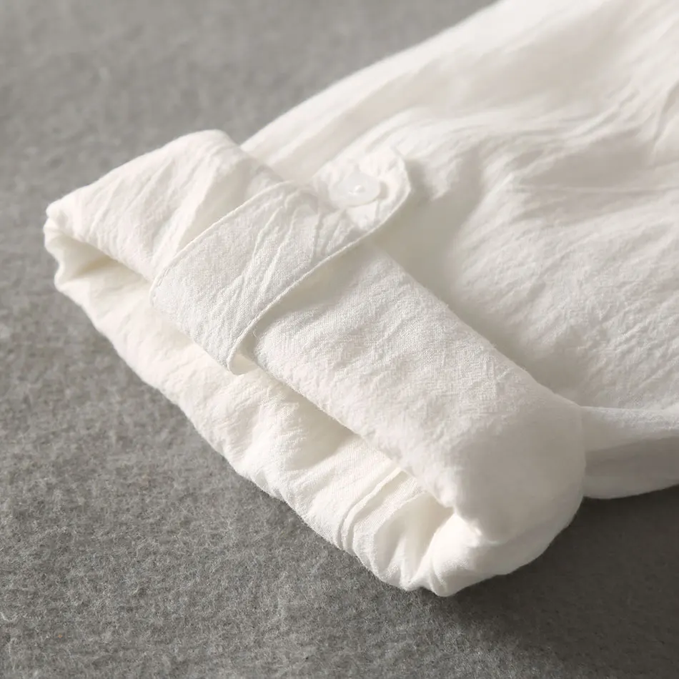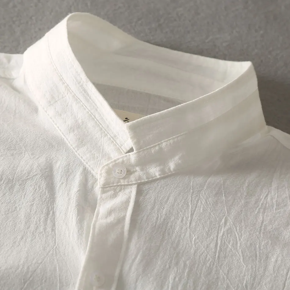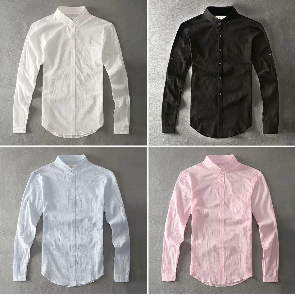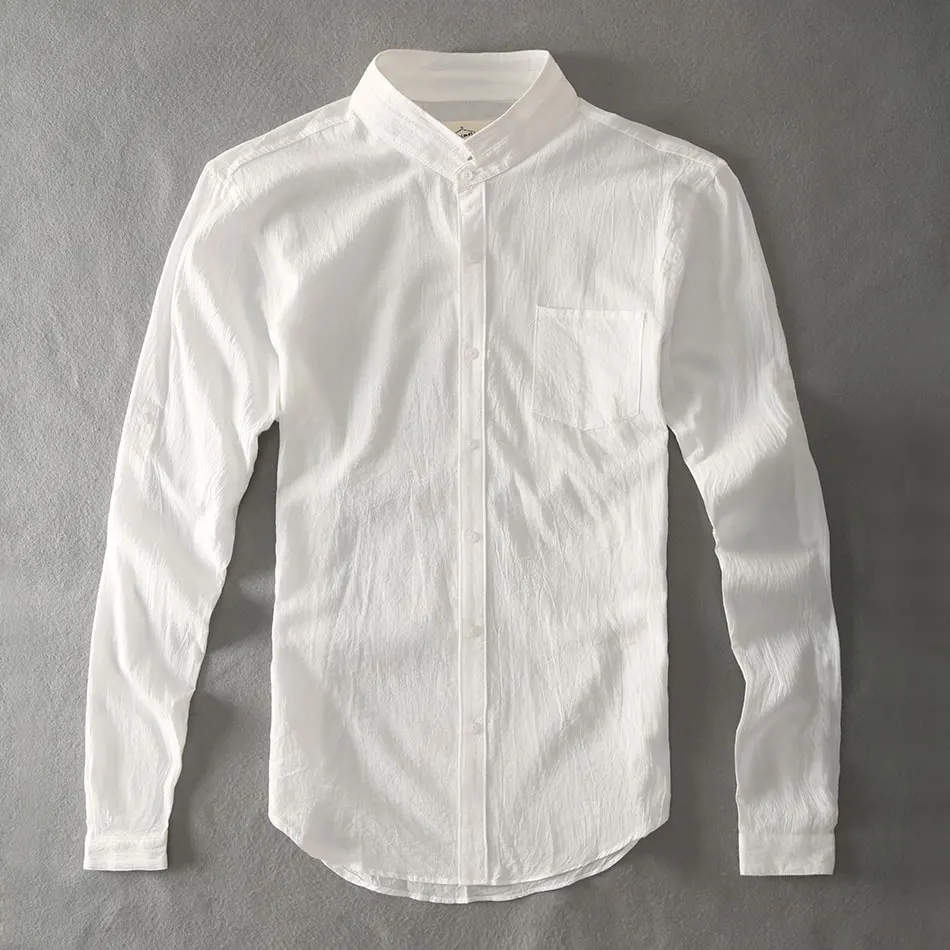 Хлопковые и льняные мужские рубашки Zecmos, белые, с китайским воротником, повседневные рубашки для мужчин