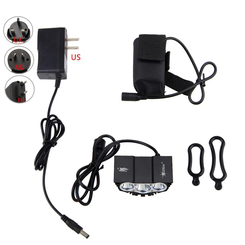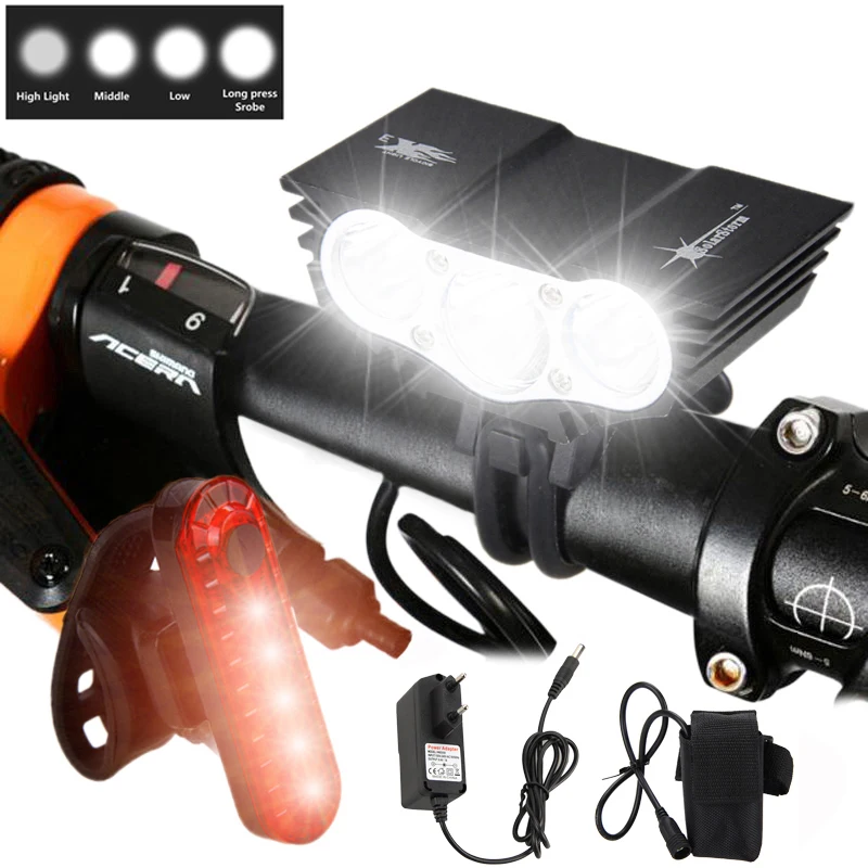 Водонепроницаемый велосипедный фонарь 3xT6 светодиодный передний велосипедный фонарь 4 режима безопасности ночной велосипедный фонарь + перезаряжаемый аккумулятор + зарядное устройство