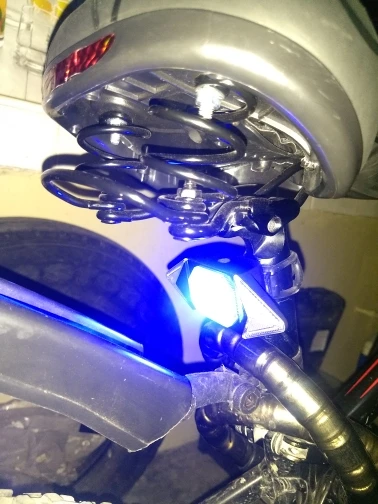 Товар получил очень быстро, камеры преувеличивают небольшой эффект, я настроить камеру, чтобы дать вам картинку ближе к моим ощущениям. В противном случае установка проста с помощью двух резинок разной длины. Я не знаю, как выключить зеленый ночной свет, я боюсь, что он пустит мой аккумулятор. Слишком плохо, что лампа не поворачивается сбоку, чтобы сфокусировать освещение в дороге.