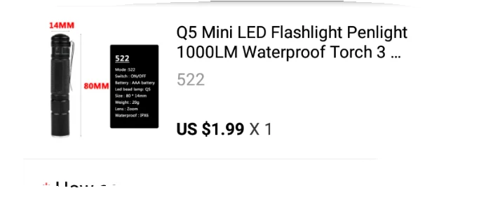 Светодиодный мини-фонарь Q5, водонепроницаемый фонафонарь 1000 лм, ...