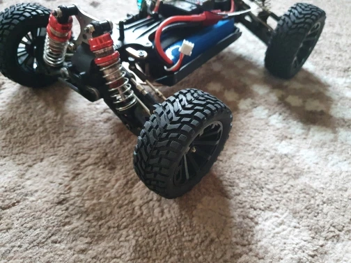 Они хорошо захватывают Ровный пол, намного лучше, чем те, которые родом в 144001 году. Примечание заключается в том, что каучук не приходит, и менее плохо, потому что 4 колеса поставляются с чертежом всегда в одном направлении, и вы должны изменить два из них на точку в правильном направлении. Немного то, что в wltoys 144001, но вы почти не можете сказать разницу. Гайки, которые поставляются, не служат этой модели, но оригиналы могут быть использованы