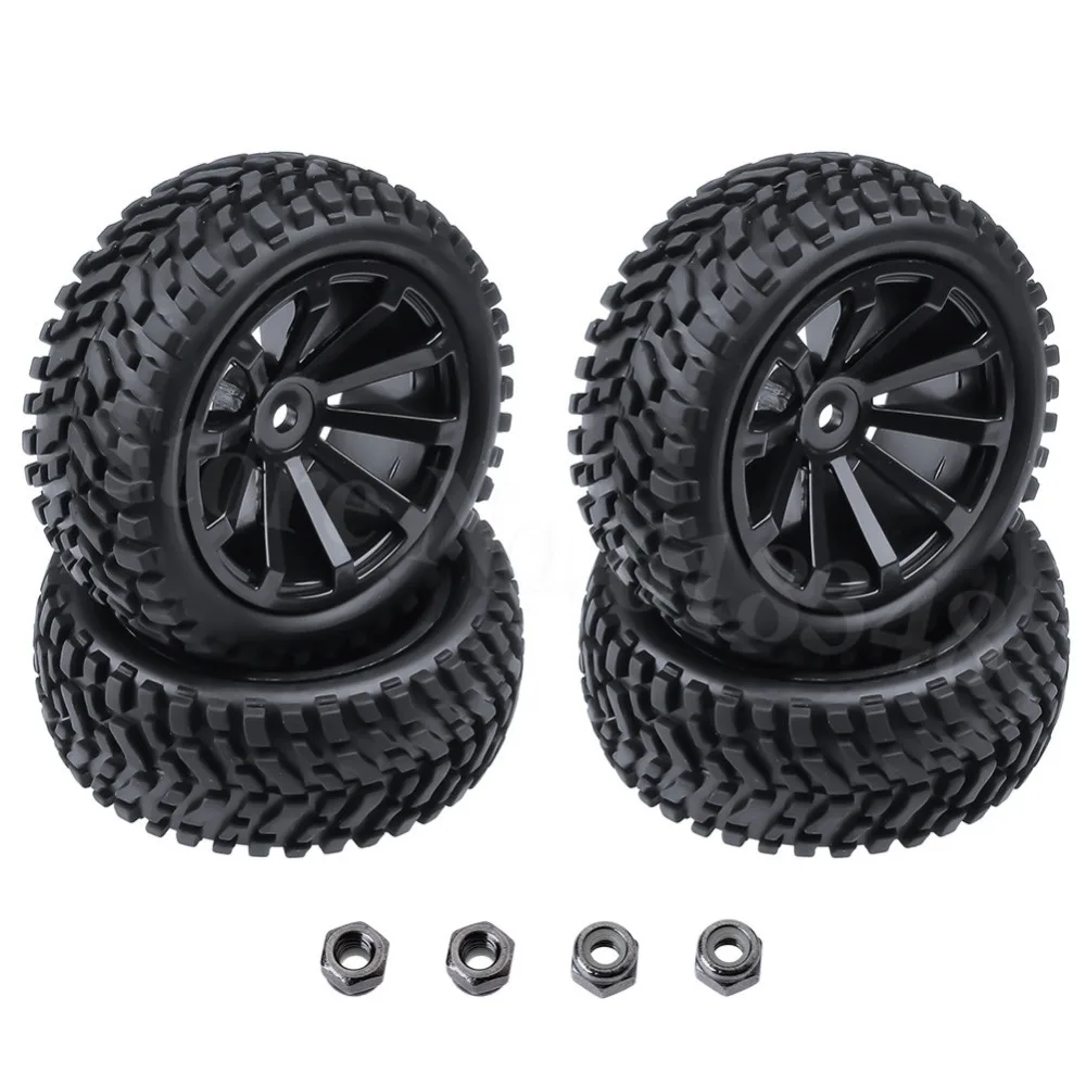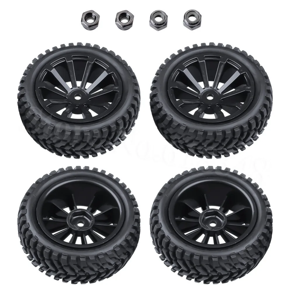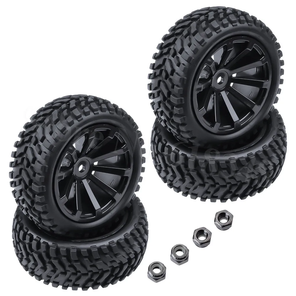 Good tires. Used on a wltoys 144001 and they fit and look great but because this car has so much powers the rubber tires can fly off :)