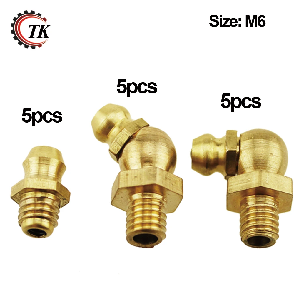 15 шт. M6 наружная резьба 1 мм Шаг 45 90 градусов прямой латунный гидравлический зерк смазка ниппель фитинги