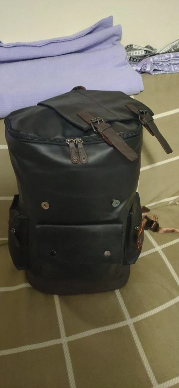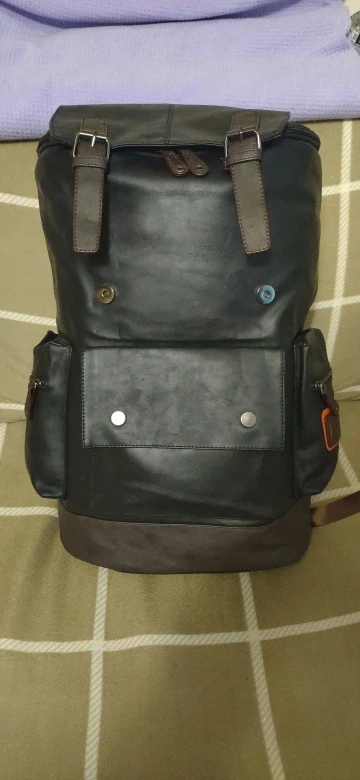 Рюкзак вызывает двойственное чувство. С одной стороны он очень вместительный, непромокаемый. Но когда он наполнен, то верхняя крышка не закрепляется, она просто хлопает сверху. Не продумано. Не хватает длины ремешка до кнопок. И кожзам не блестящий, а матовый и из-за этого теряет во внешнем виде. На фото кстати получился лучше по виду. Ну может я его чем нибудь смажу, типа полироли для обуви))). А то выглядит пыльным каким то. Практичный, этого у него не отнять, надеюсь крепко пришиты плечики. В общем конечно вещь полезная, и денег своих стоит. Я выбирала между коричневым и чёрным. Коричневый тоже может закажу. Рекомендую. Спасибо продавцу. Пришла посылка за месяц где-то.