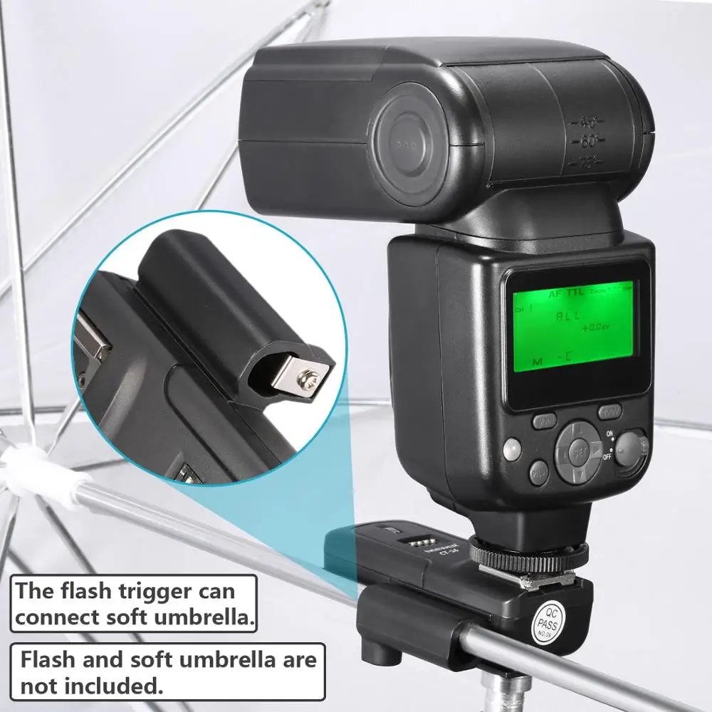 С держателем входа зонта триггер может соединиться с мягким зонтом (вспышка и мягкий зонтик не входят в комплект).