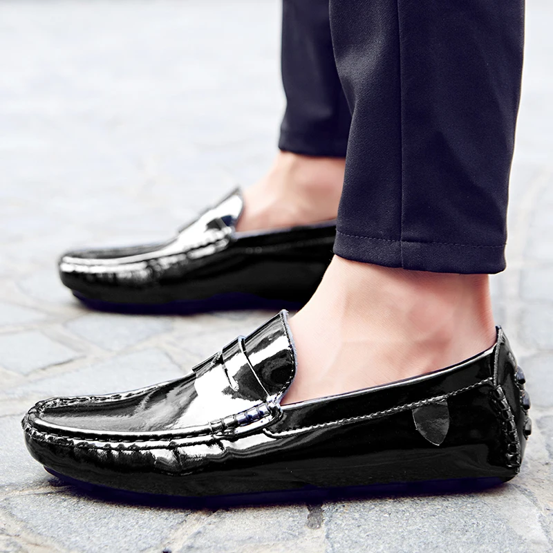 Лоферы CcharmiX мужские из лакированной кожи, повседневные туфли, без застежки, для вождения, зеркальные, большие размеры 13