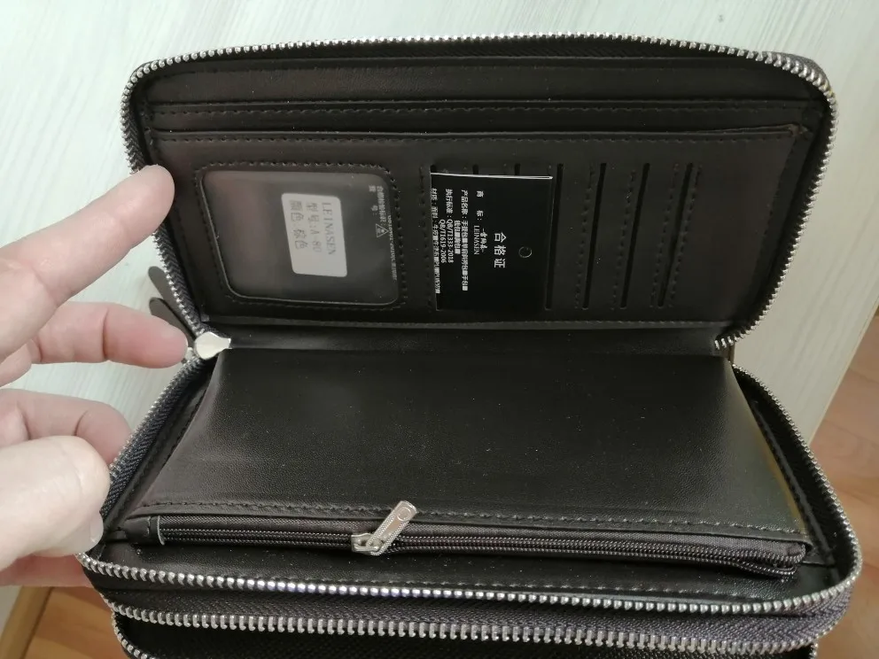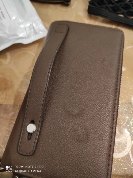Отличный, вместительный кошелек (или барсетка, непонятно). Но ремешок для руки оторвался при первой же попытке продеть руку. Нам он не нужен, а так кошелек отличный