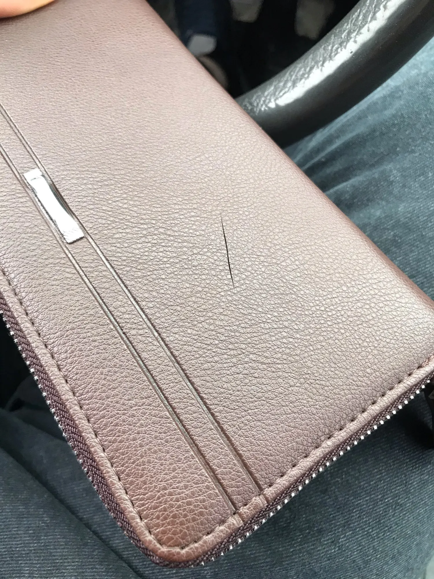 Продавец не добросовестный. Отправил мне бракованный товар. И не хотел мне даже отвечать. В конце концов не решил мою проблему. Я выбросил этот кошелёк. Не ходить же мне с подрезанным. Не покупайте у него. Он лжец. Товар был очень хорошо упакован и не мог он испортиться при доставке. Он его явно положил туда таким. Не покупайте у него. Он лжец. Я не первый кого он так обманул.