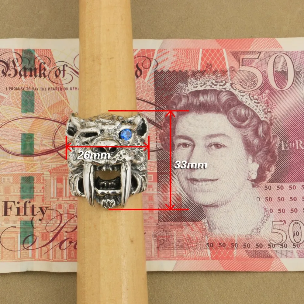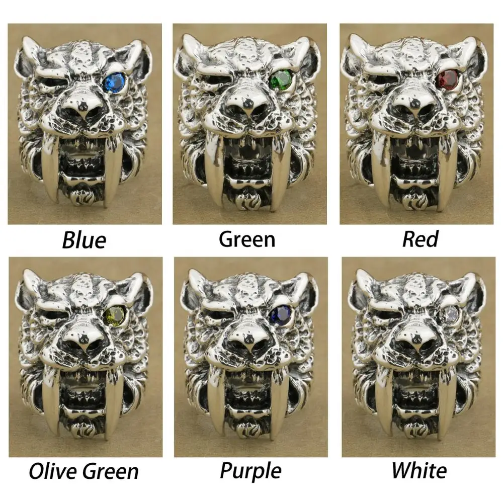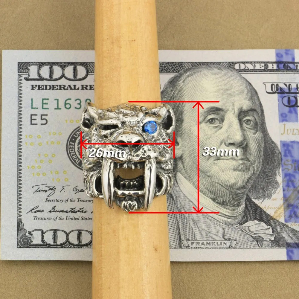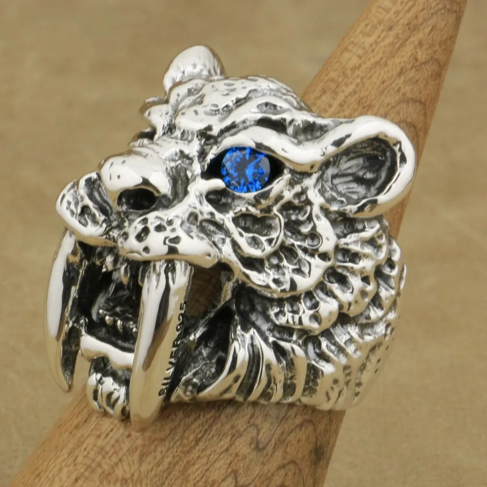 LINSION 925 пробы серебристый синий глаз с фианитами перстень саблезубый тигр мужской байкер рок панк Тигр кольцо TA1X США Размер 7 15