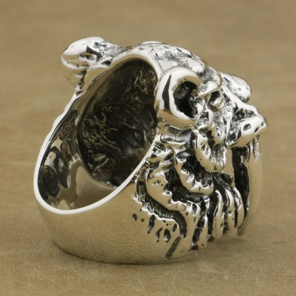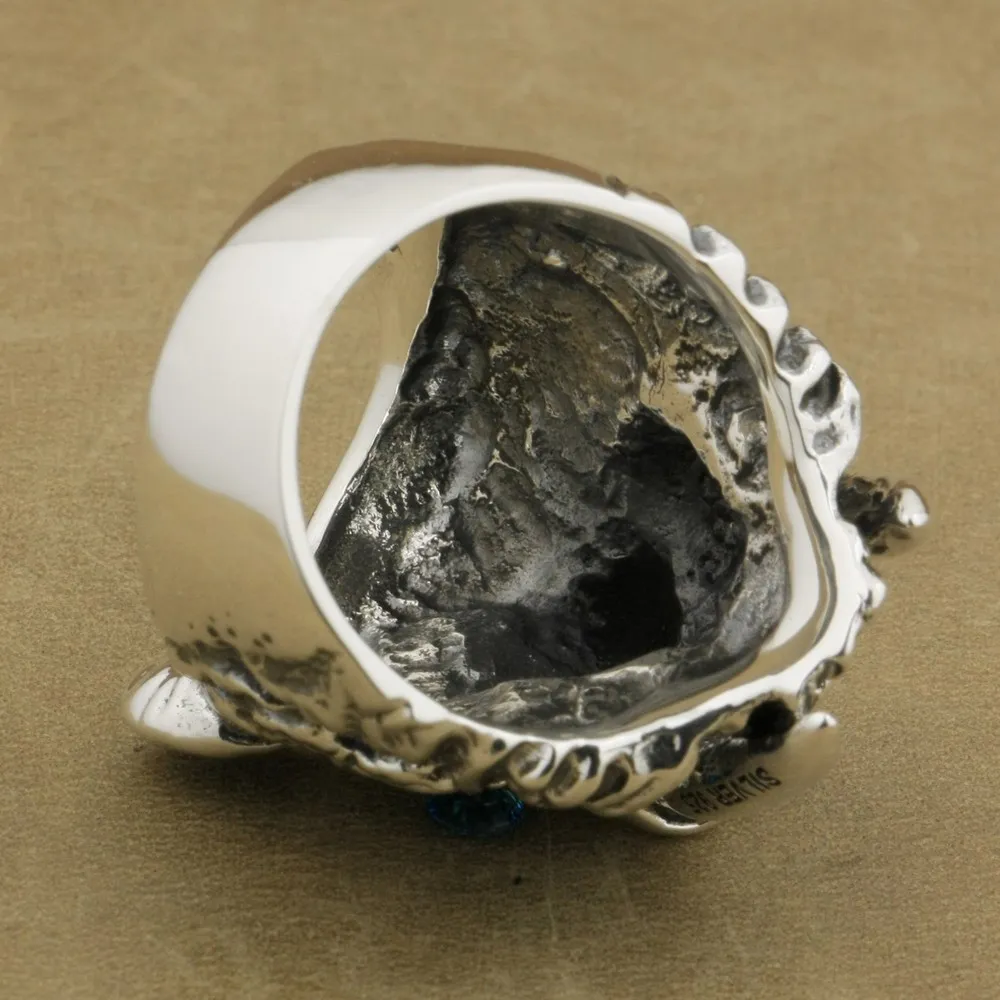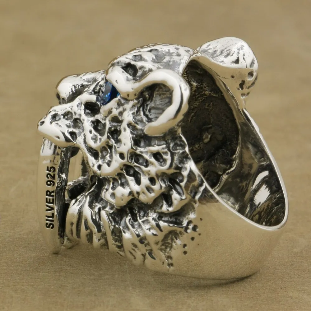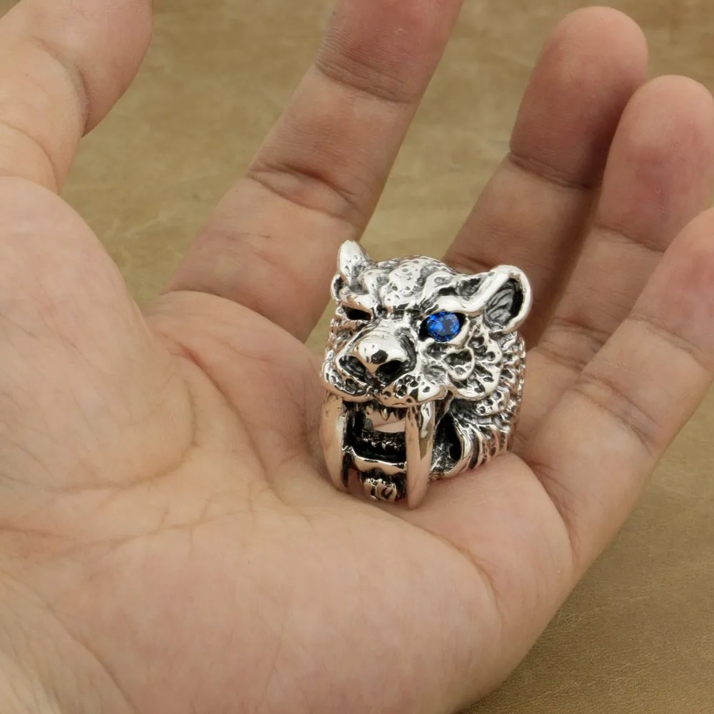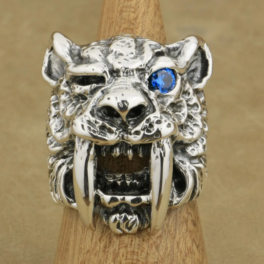 LINSION 925 пробы серебристый синий глаз с фианитами перстень саблезубый тигр мужской байкер рок панк Тигр кольцо TA1X США Размер 7 15