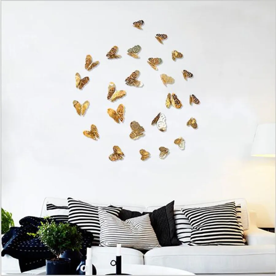 12 шт. 3D полые наклейки бабочки на стену для домашнего декора DIY бабочки на холодильник наклейки для украшения комнаты декор для вечеринки и свадьбы