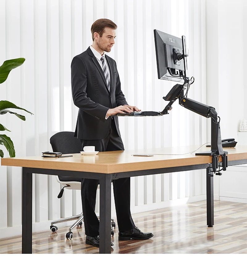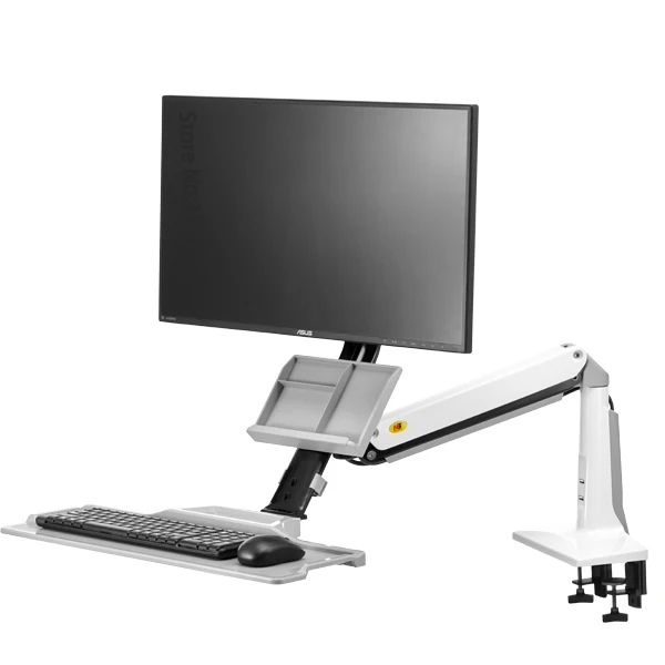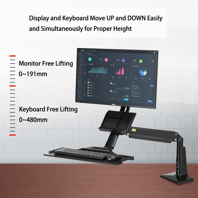 Регулируемый по высоте дисплей и клавиатура легко перемещаются и одновременно поднимаются для правильной высоты, что позволяет легко садиться или стоять по требованию по вашему выбору. Выдвижная и складная клавиатура обеспечивает настройку клавиатуры и выталкивает руку, когда вам нужна поверхность и пространство вашего стола.