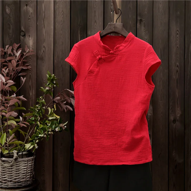 Женская хлопковая льняная блузка в китайском стиле, летняя однотонная Повседневная Блузка, винтажная Этническая рубашка, топы, одежда 5XL, 6XL