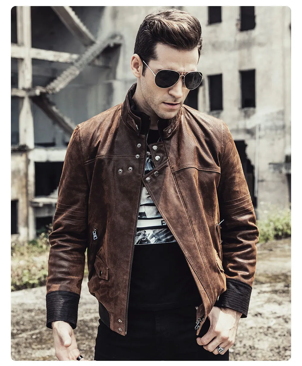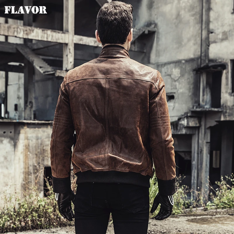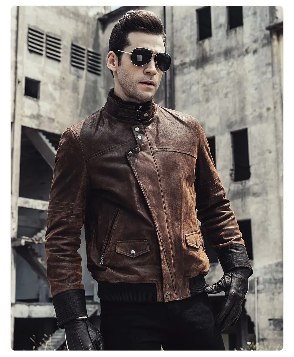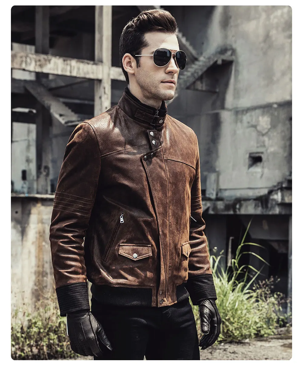 Новинка 2017, мужская кожаная мотоциклетная куртка, теплое пальто из свиной шкуры, куртка из натуральной кожи на осень и зиму