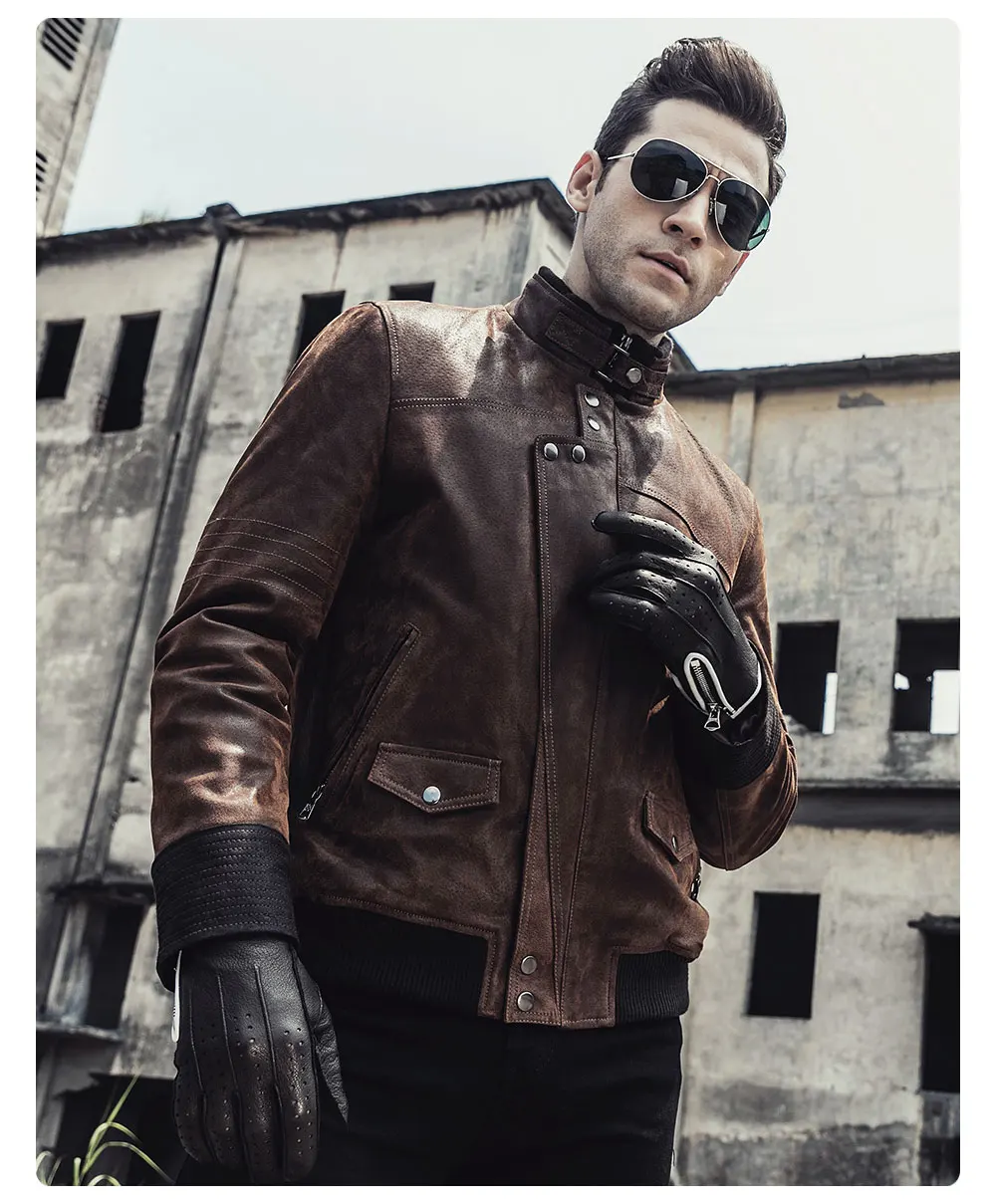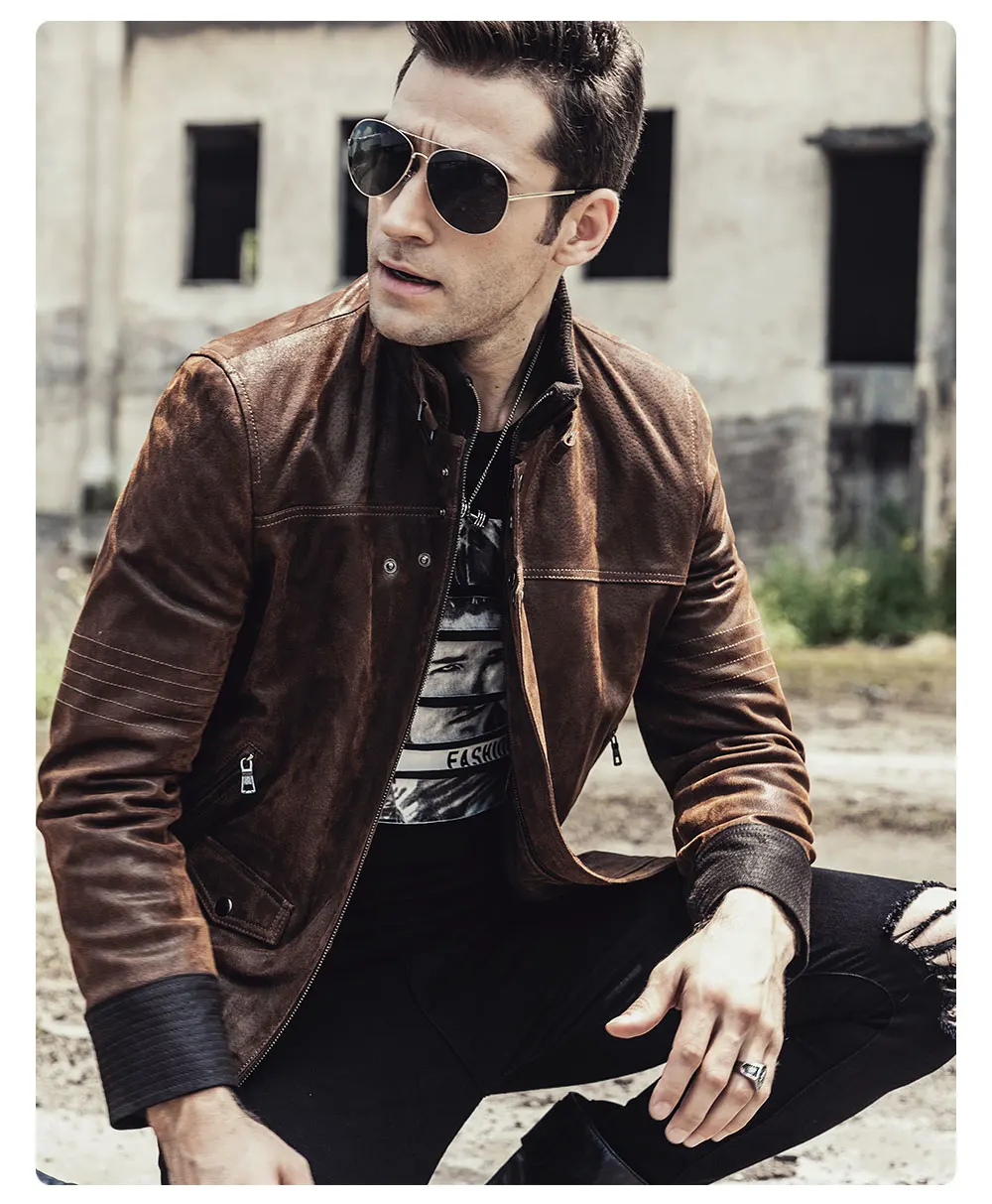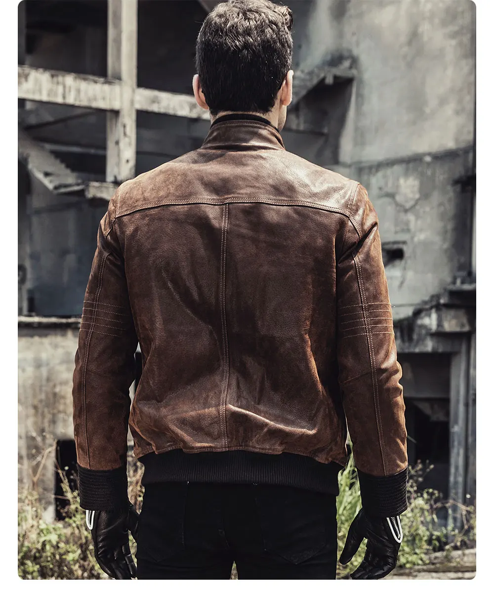 Новинка 2017, мужская кожаная мотоциклетная куртка, теплое пальто из свиной шкуры, куртка из натуральной кожи на осень и зиму