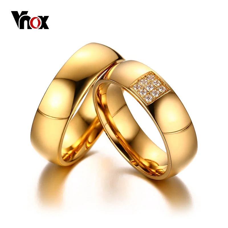 Vnox Простые Свадебные Кольца для Для женщин Для мужчин элегантный AAA CZ Камни золото-цвет кольцо Альянс обещание Обручение группа подарок