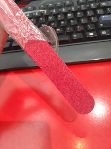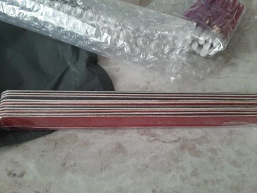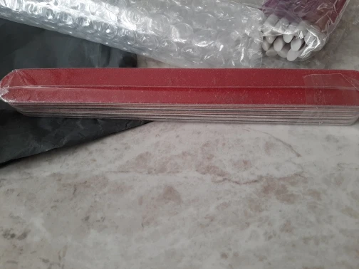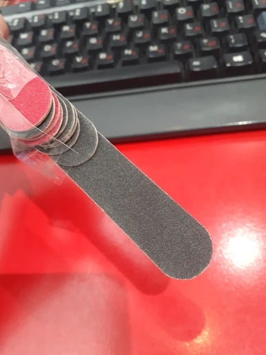Хорошие пилочки на деревянной основе. Мне немного неудобно с ними работать, так как привыкла к пилочкам на вспененной основе. Абразивность хорошая, не осыпается. У продавца не нашла сколько грит, но примерно 180 с обеих сторон.
