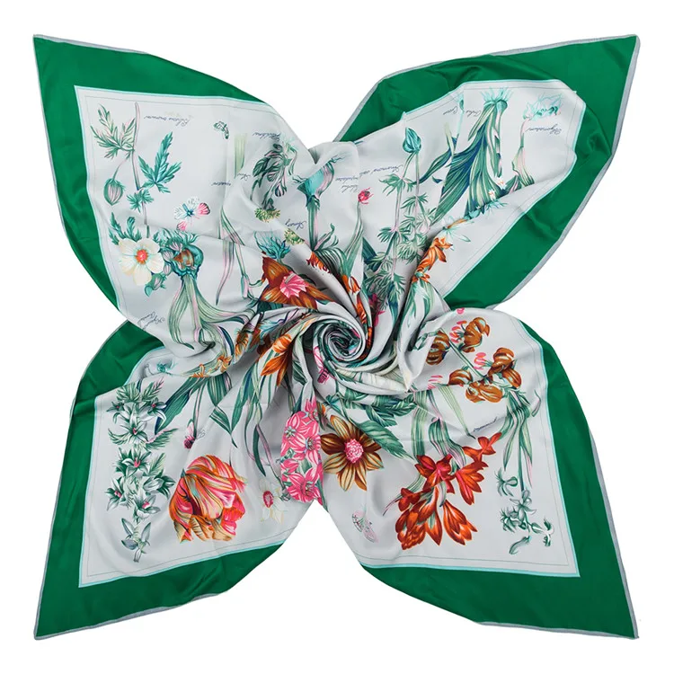 Женский шелковый шарф с цветочным принтом, 100% x 130 см