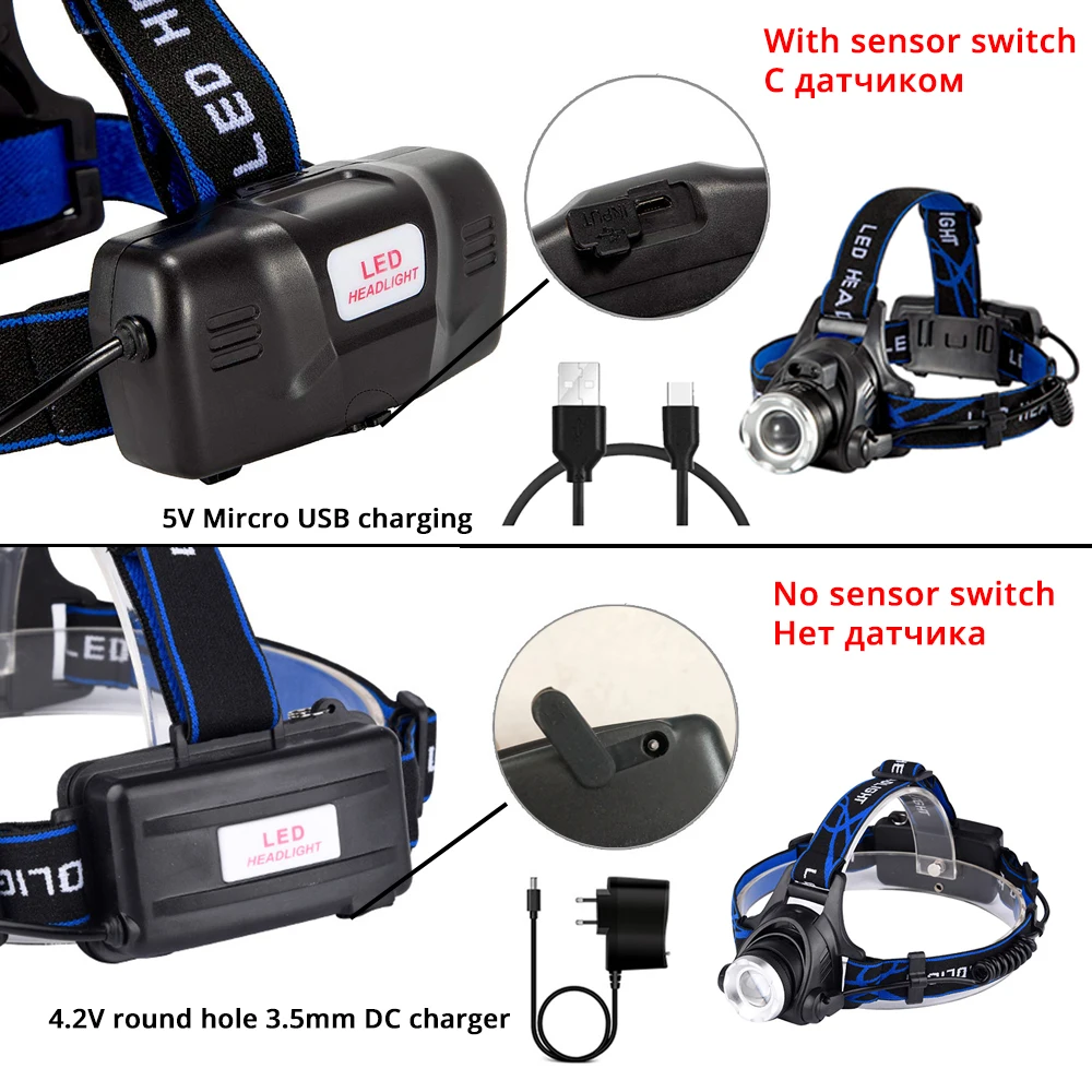 брал с диодом v6, и датчиком движения. Диод v6 не греется и светит мощно,есть с чем сравнить.В работе датчик движения не нужен,бесполезная штука. Из недостатков тугая резинка ,облегает плотно голову,со временем растянется.Батареи как будут не знаю,время покажет. Хватает на 8 часов ночных работ.В целом товар очень понравился к покупке рекомендую. Следующий буду заказывать без датчика движения с таким же диодом v6.