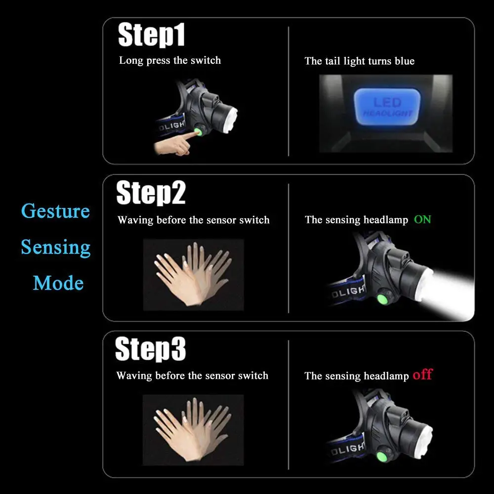 Светодиодный налобный фонарь рыболовный головной светильник T6L2V6 3 режима масштабируемый водонепроницаемый супер яркий походный светильник с питанием от 2 батареек 18650