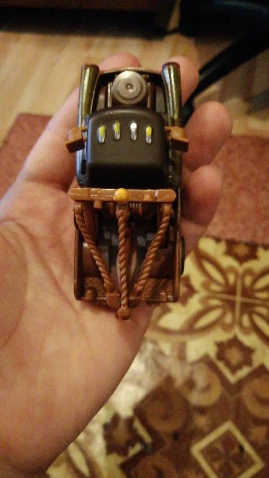Заказ 16.12. На почте 06.01. Целый, находился в надутом пакете (как для телефонов), + обернут в пупырку. Корпус из какого-то металла, скорее всего силумин. Трекался от и до. Дети довольны, уже заказали других персонажей в этом же магазине. Смело заказывайте.