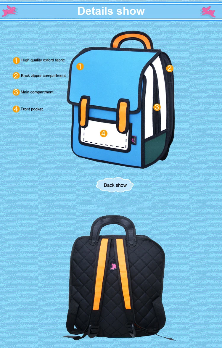 Женский рюкзак в стиле прыжков 3D, с рисунком из мультфильма
