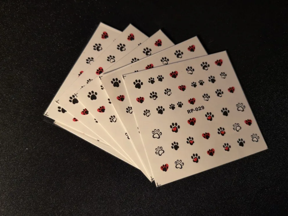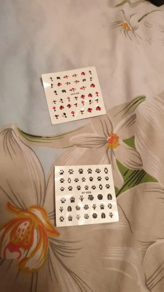 Пластины для стемпинга очень качественные, аккуратные. А переводки с лапками просто бомба. Очень быстро отмачиваются, и легко клеятся. Смотрятся на ноготках прикольно, особенно в комбинации с другими картинками. Я комбинировала с собачками.