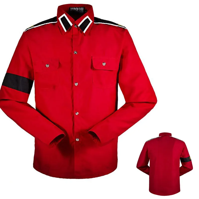 Рубашка хлопковая, Классическая, Майкл Джексон, MJ, красная, CTE, с вышивкой, XS-XXXL