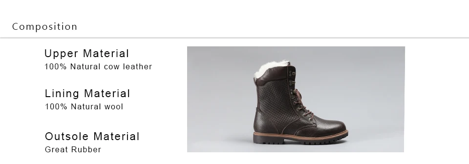 В особенно холодном месте, обувь из поддельной кожи очень легко становится твердой и ломается. Обувь из поддельной шерсти плохо сохраняет тепло. Но наш магазин может решить все ваши вопросы. Обувь полностью изготовлена вручную сапожниками. Передок этой обуви изготовлен из натуральной бычьей кожи, подошва изготовлена из противоскользящего износостойкого каучука. Этот кожаные ботинки Материал подкладки шерсть, 100% натуральная овечья шерсть! Хотя бы вы в Оймяко́н, она и поддерживает тепло ваших ног. Если вы приехали из России,Украина,Казахстан,Беларусь,Канада, Норвегия, Финляндии, Швеции, Исландии, дании и других холодных странах, вам нужно пару зимние ботинки кто может держать вас в тепле, эти сапоги являются лучшим выбором! Если вы приехали из теплой страны, Индия, Нигерия, Бразилии и так далее, пожалуйста, не заказывайте эти сапоги, потому что они действительно слишком жарко! Перед выбором размера, просим, чтобы точно измерять длину вашей стопы, потом согласно таблице соответствия размера выбирайте. если вы в будущем наденете толстые чулки, выбирайте размер больше нормального на один. Поверхность обуви сделана из натуральной бычьи кожи. Возможно, вы боитесь купить обувь из поддельной кожи, но в нашем магазине, вам нет необходимости беспокоиться об этом вопросе. Если вы сможете свидетельствовать, что это не настоящая кожа, мы будем возвращать всю сумму!
