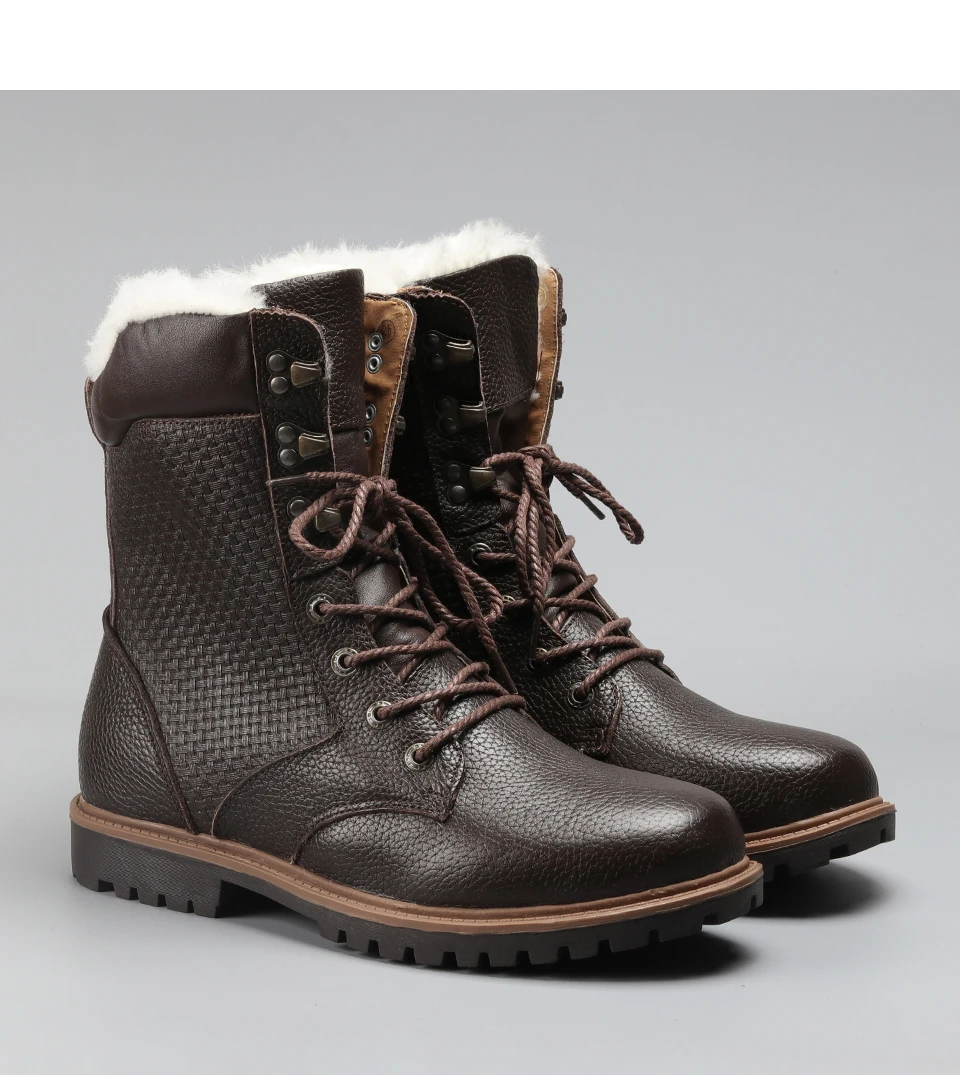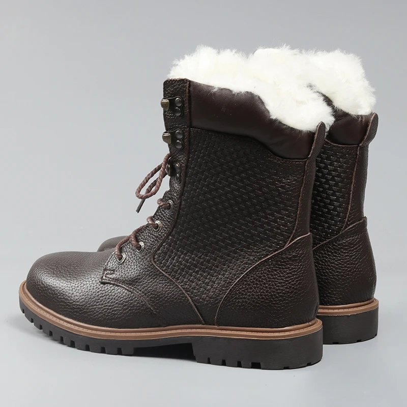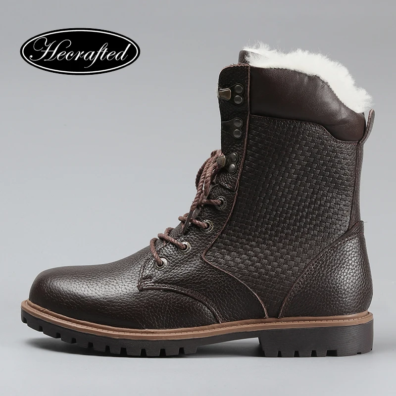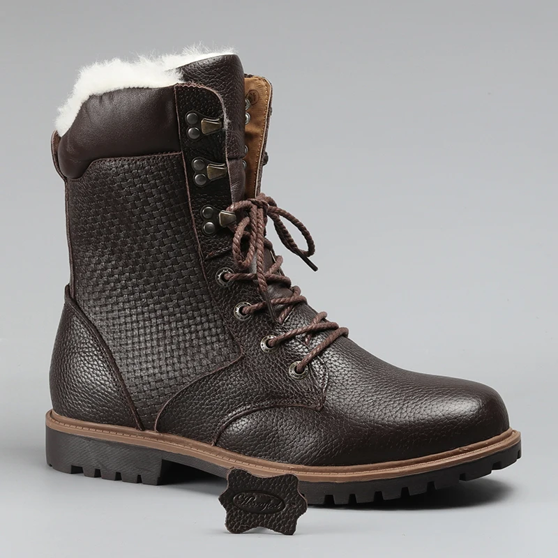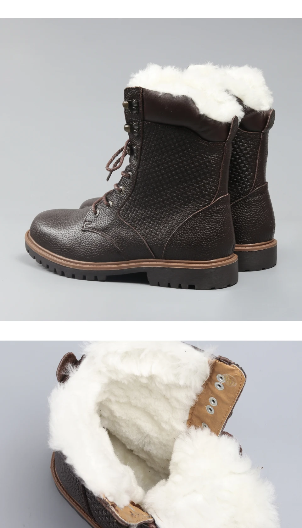 Натуральная шерсть Мужская зимняя обувь Теплые Настоящая кожа ручной работы Мужские зимние сапоги # YM1568