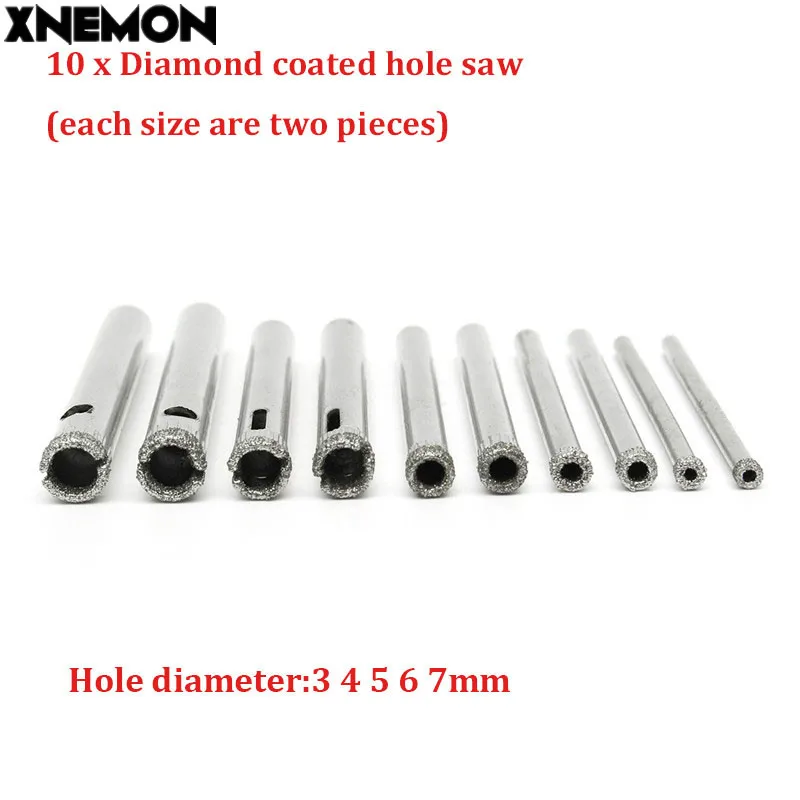 XNEMON 10 шт.компл. алмазная пила с отверстиями гранитная стеклянная плитка мраморные коронки сверла 3 мм 4 мм 5 мм 6 мм 7 мм 2 шт. каждый размер