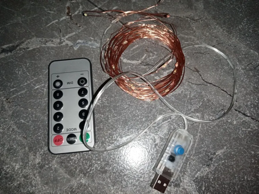 гринлянда понравилась! Горит и мигает разными огоньками при управление с пультом. Брала с Usb портом, сто бы можно было подключить к компьютеру! Просто класс и даже просто обычный адаптер от телефона так же подходит суперски (+_+) Пульт идёт без батарейки, но проблем нет, от другого пульта достала с ленты, подходит батарейка и всё работает супер! Сама конечно очень тонюсенькая, сделана из обычной лакированной медной проволоки ( Вот куда ушли все катушки и трансформаторы из СССР (+_+)) Конечно глупо проверять если 20 м, но длинная ! Для тюлей подойдёт, но боюсь из за конструции лучше только на крашенную стену! К покупке рекомендую очень красиво бегают огоньки, словно в сказку поподаешь (+_+)